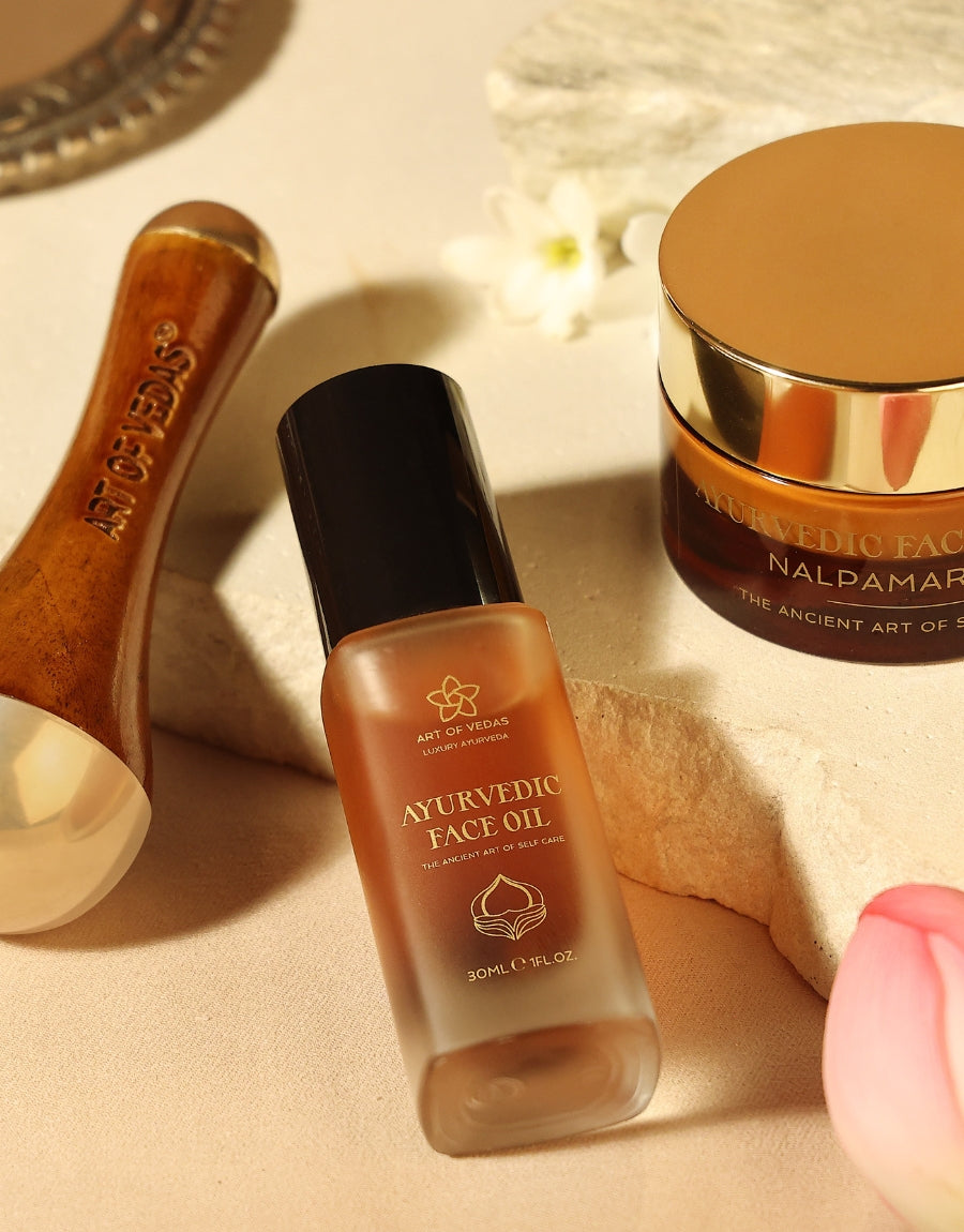 Rivela l'essenza della vera bellezza ayurvedica con il nostro Ayurvedic Beauty Ritual Kit, una combinazione di antica tradizione e cura consapevole di sé. Questo set accuratamente selezionato include il nostro pregiato Ayurvedic Face Oil e un Mini Kansa Wand artigianale, ispirato alle pratiche ayurvediche secolari.